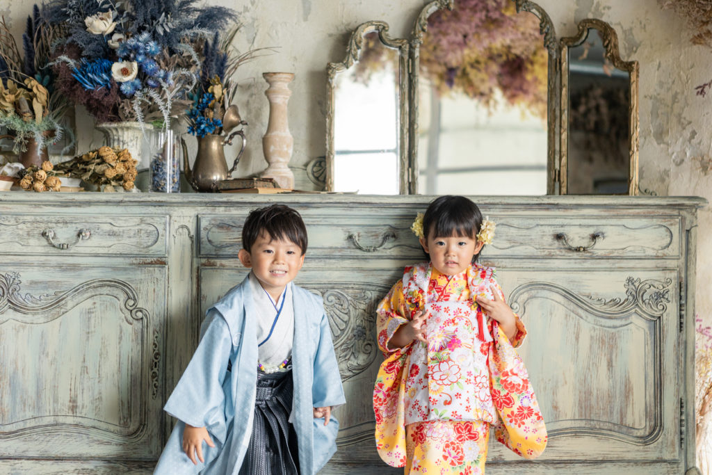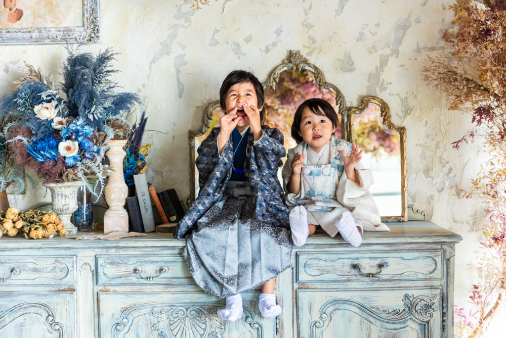 京都の子供スタジオでの七五三撮影の様子/5歳と3歳の七五三を兄弟で撮影
