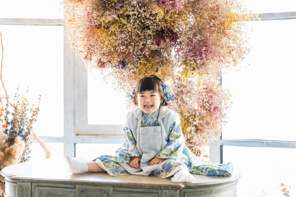 こんにちは京都の子供撮影スタジオのアオハルです!今回はアオハルでの七五三撮影の様子を紹介させて頂きます!アオハルでは、1万本以上のお花やアンティnーク家具に包まれた空間で撮影できます!こだわってつくった特別な空間での撮影の様子をぜひご覧くださいませ!では早速紹介していきます!